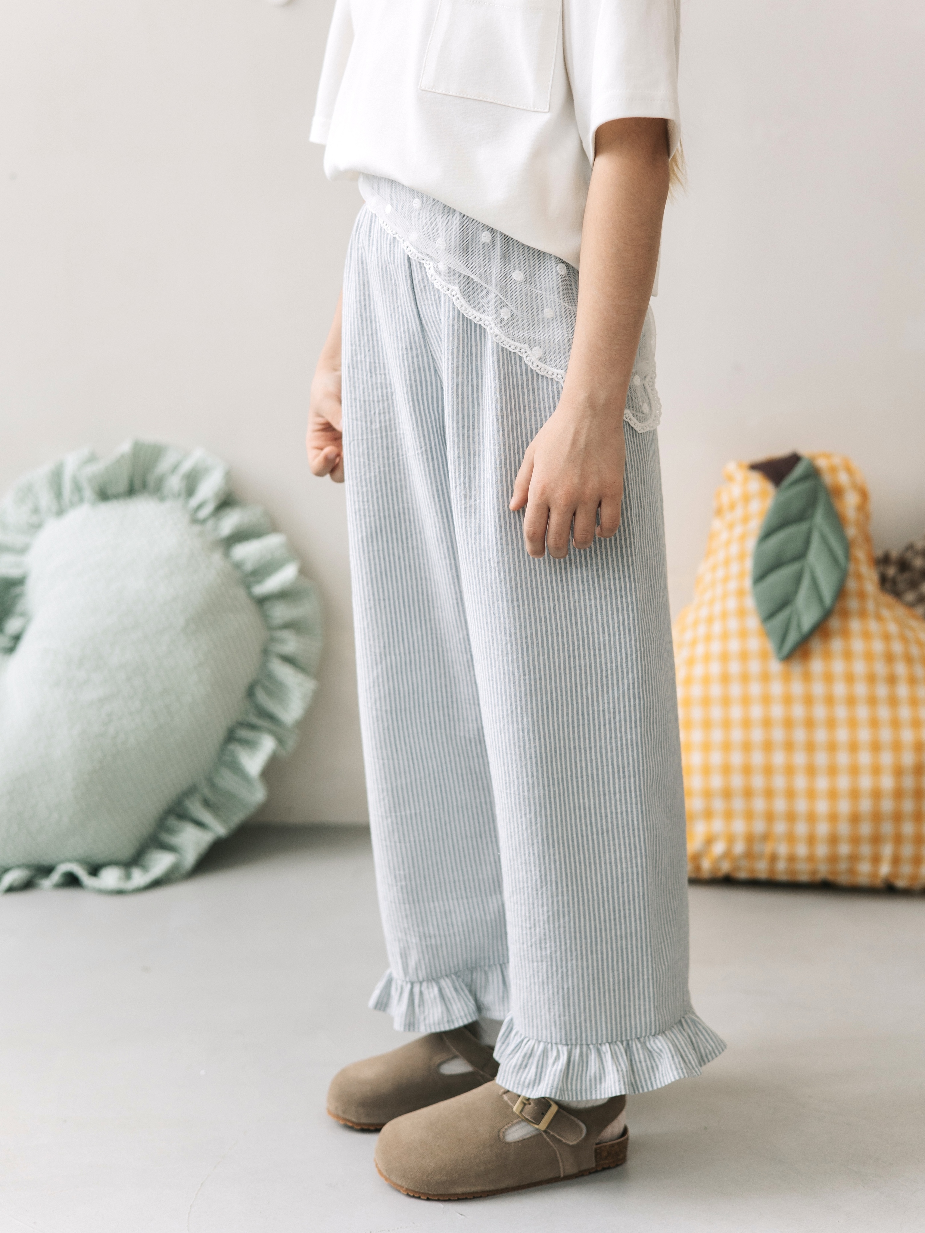 Брюки в полоску с рюшами, Голубой
