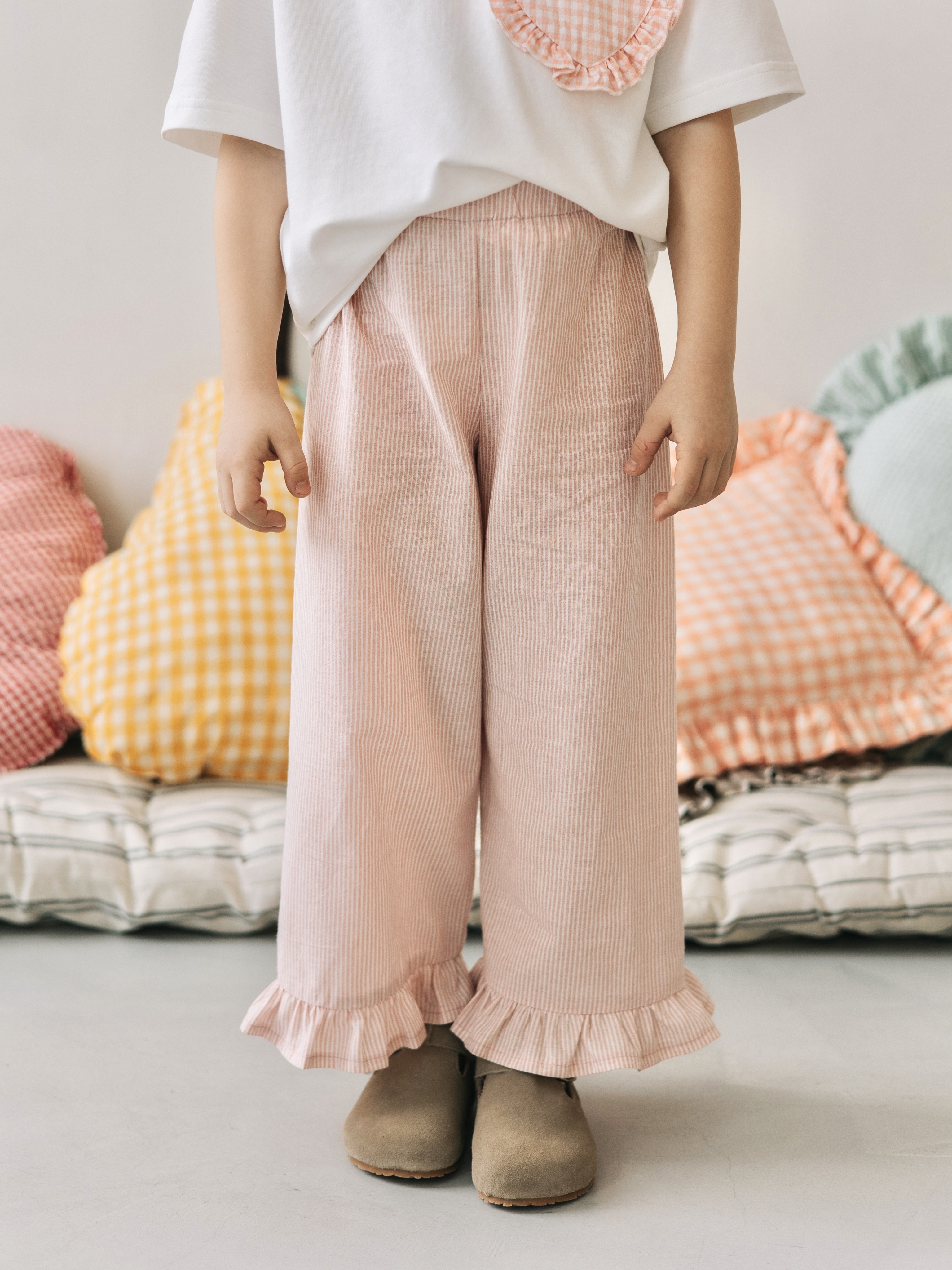 Брюки в полоску с рюшами, Розовый