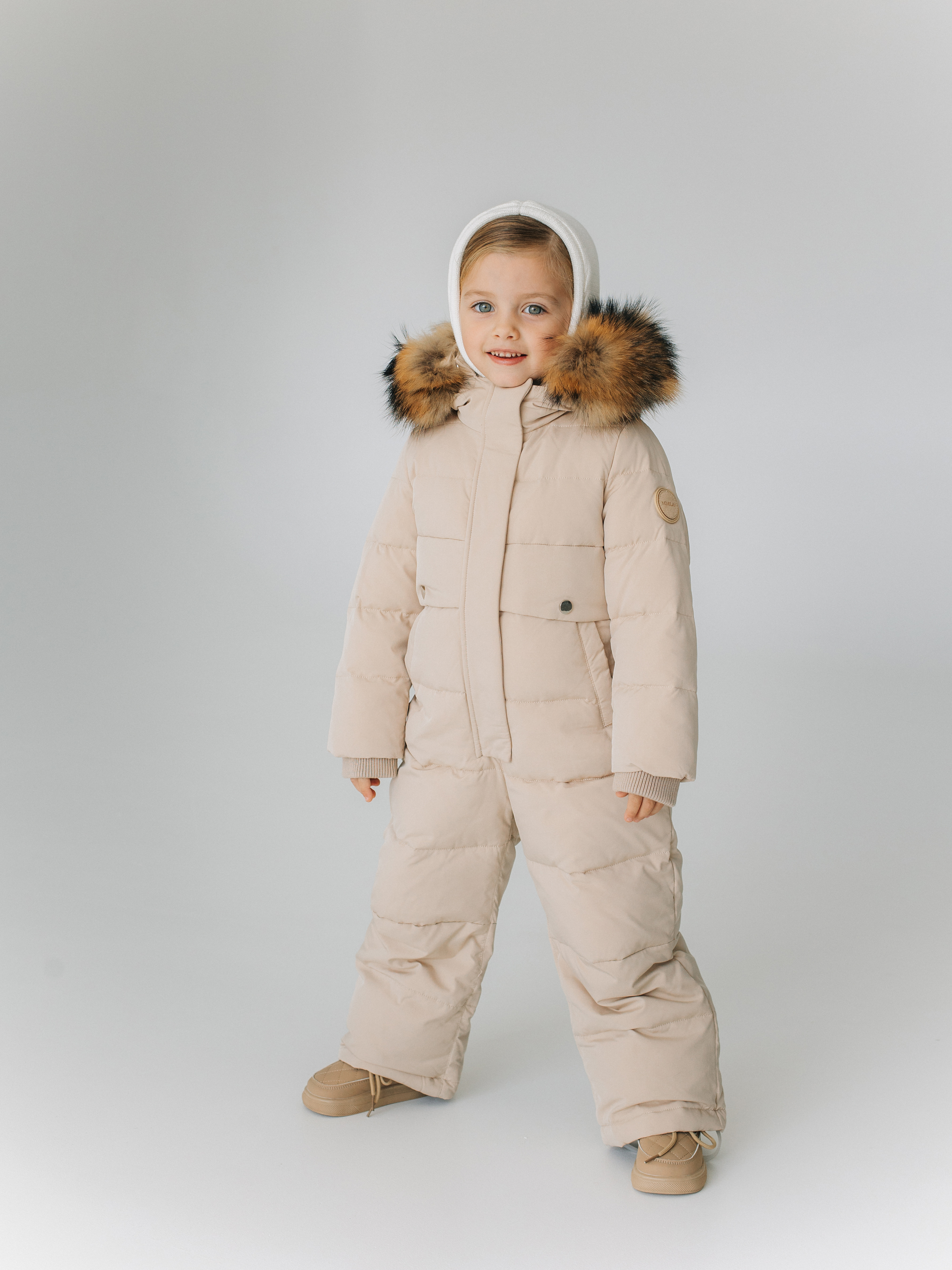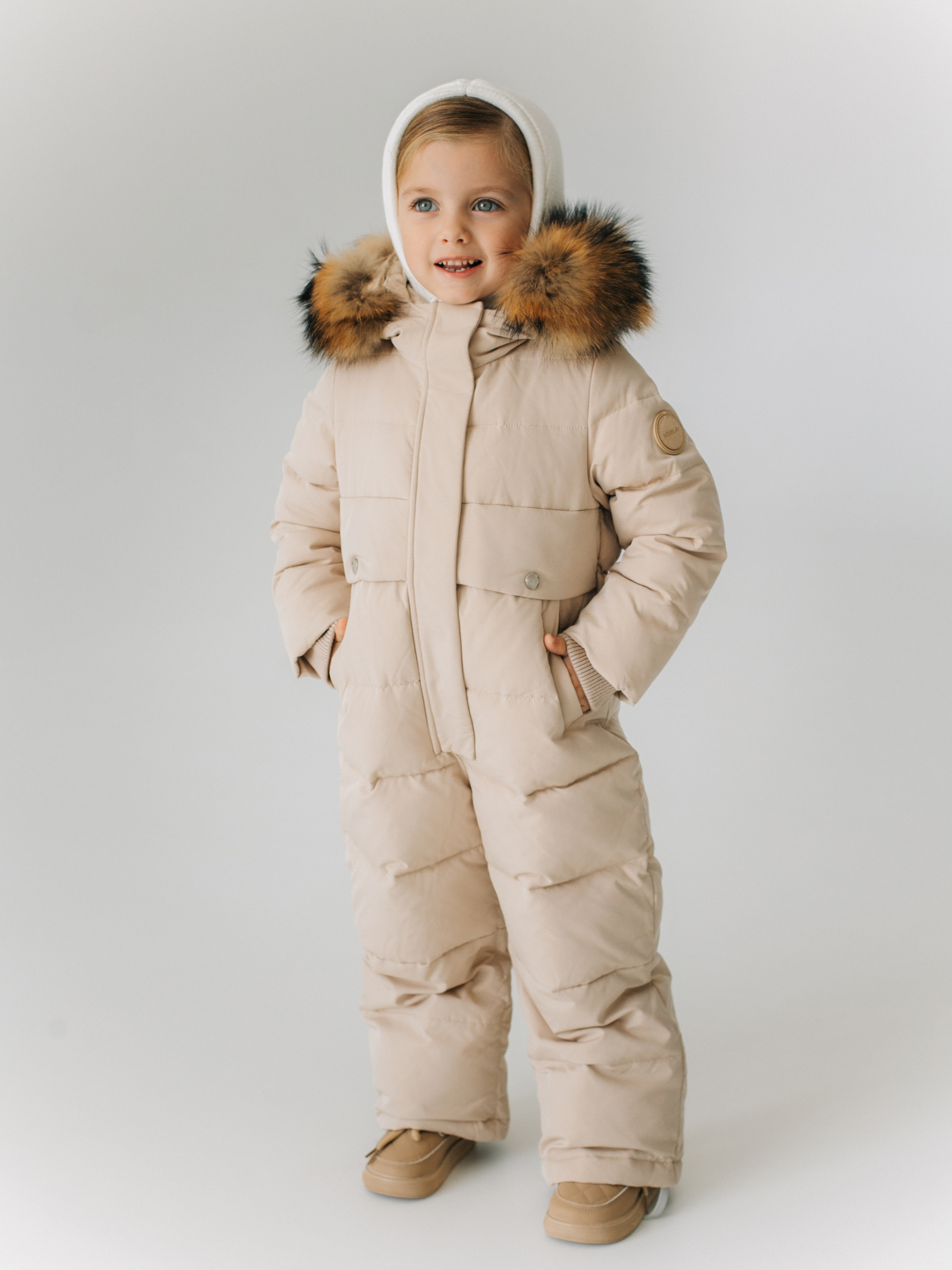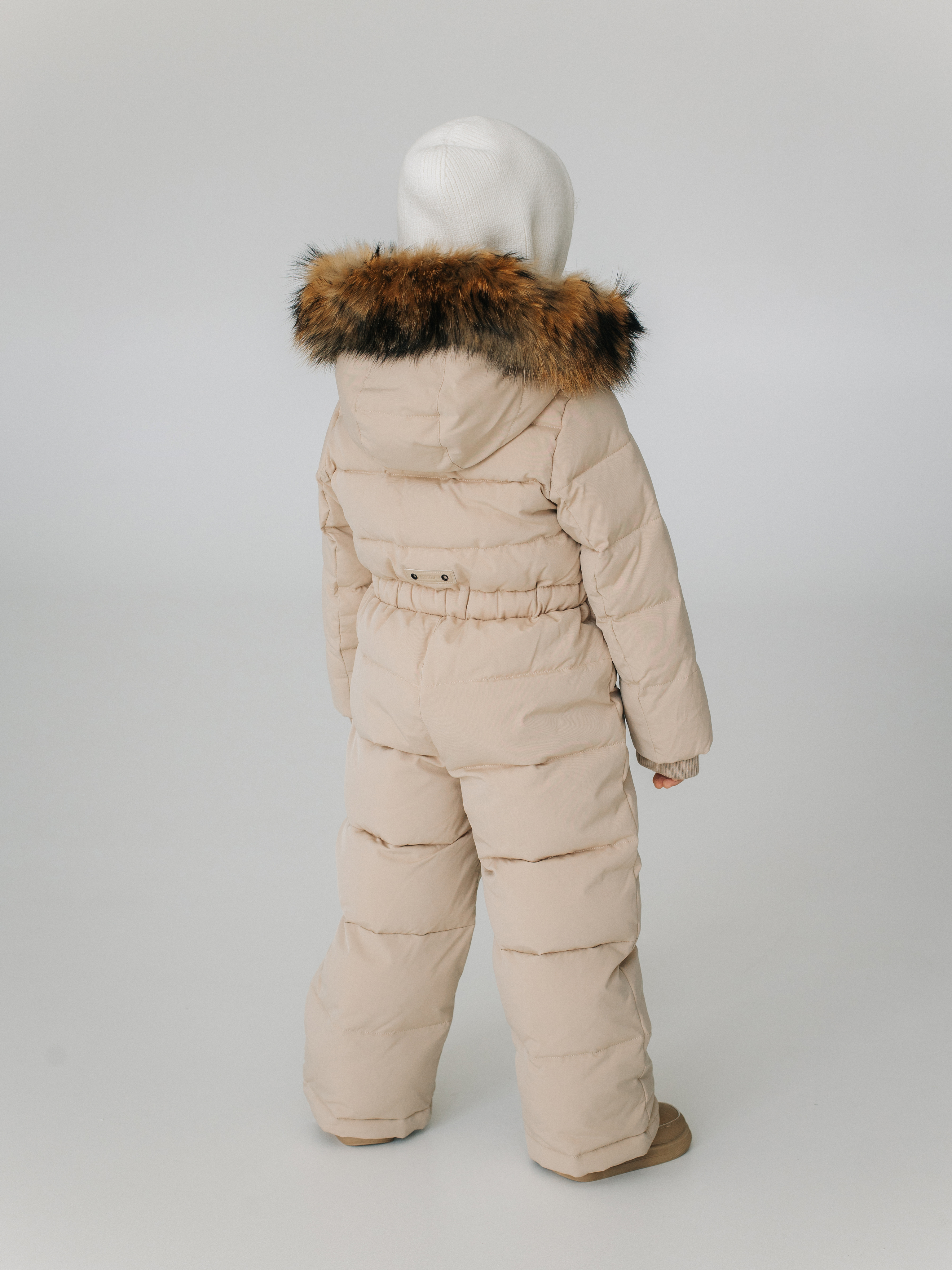 Зимний комбинезон из ветро и влагозащитной ткани. Капюшон вшитый со съемной опушкой из натурального меха. По низу рукавов и штанин эластичные манжеты на резинке.