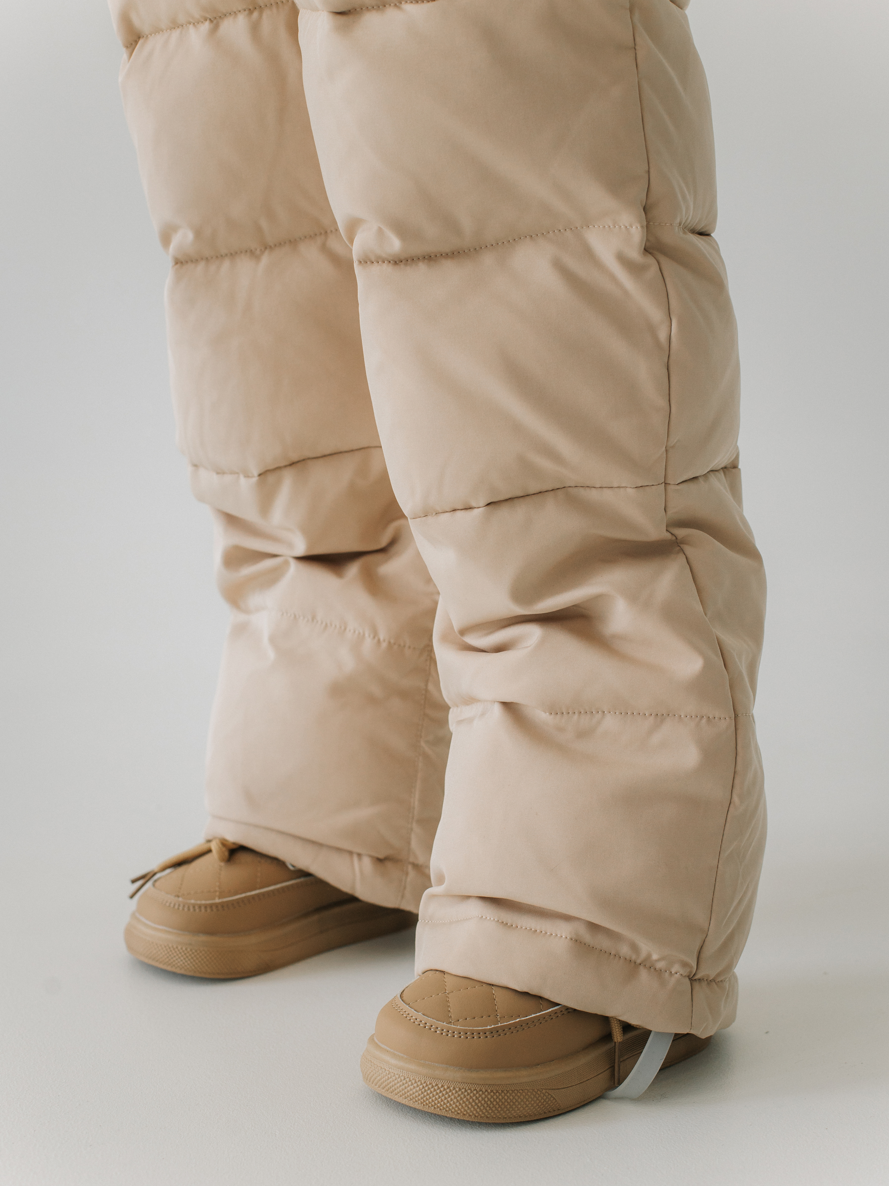 На штанинах съемные регулируемые силиконовые штрипки на пуговицах. Для удобства ношения в помещении предусмотрены внутренние лямки-резинки.