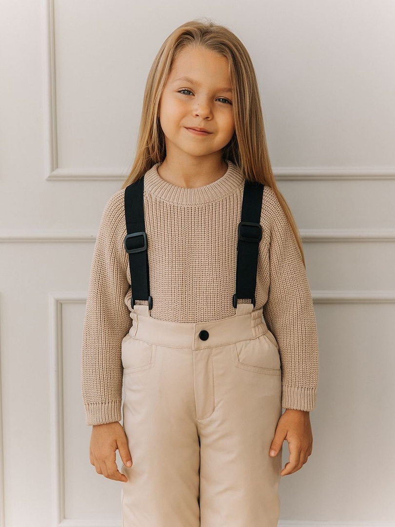На штанинах съемные регулируемые силиконовые штрипки на пуговицах. Для удобства ношения в помещении предусмотрены внутренние лямки-резинки. Флисовая подкладка для дополнительного тепла.