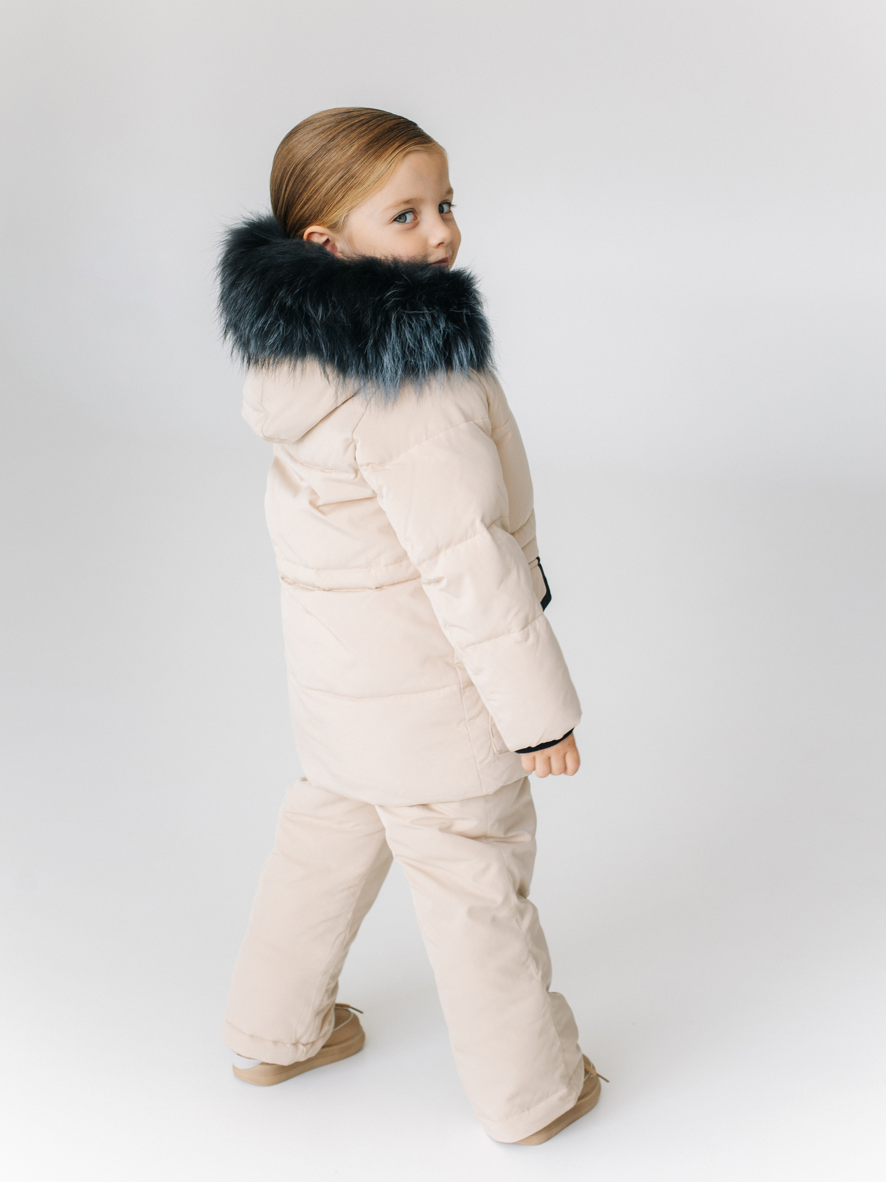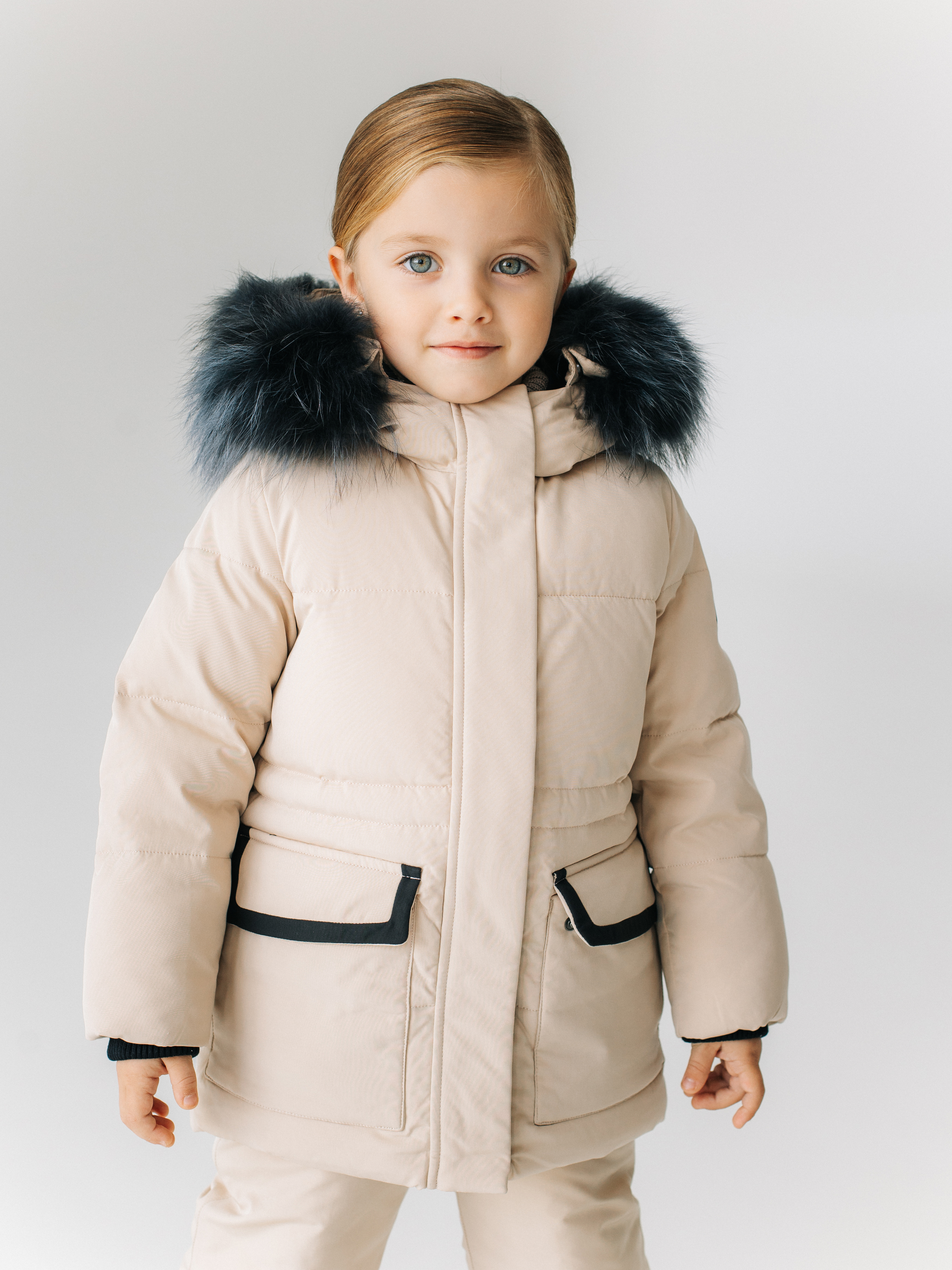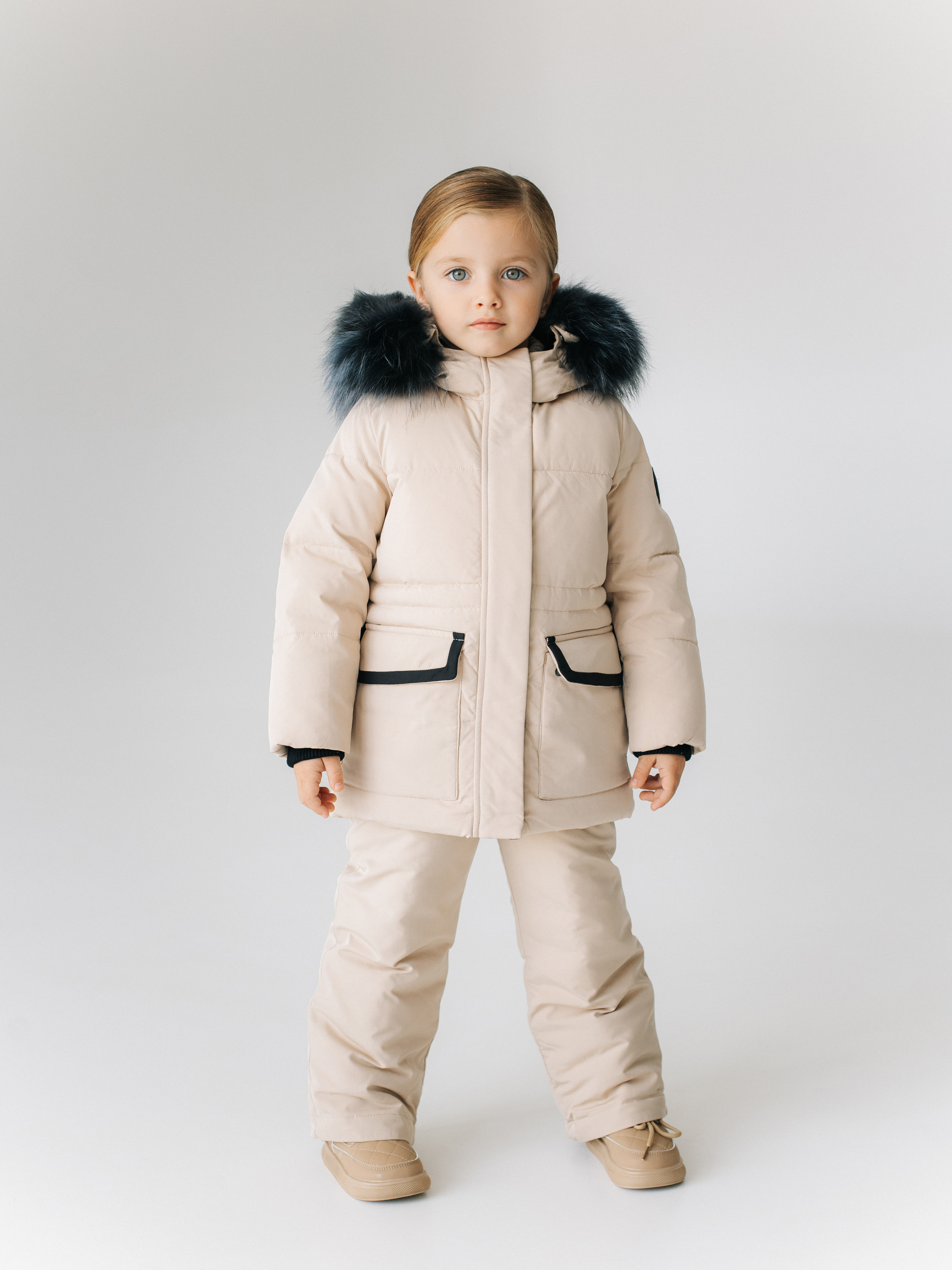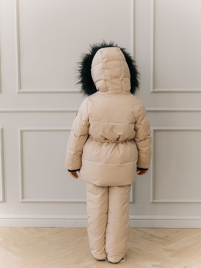 Капюшон вшитый со съемной опушкой из натурального меха. По низу рукавов и штанин эластичные манжеты на резинке.