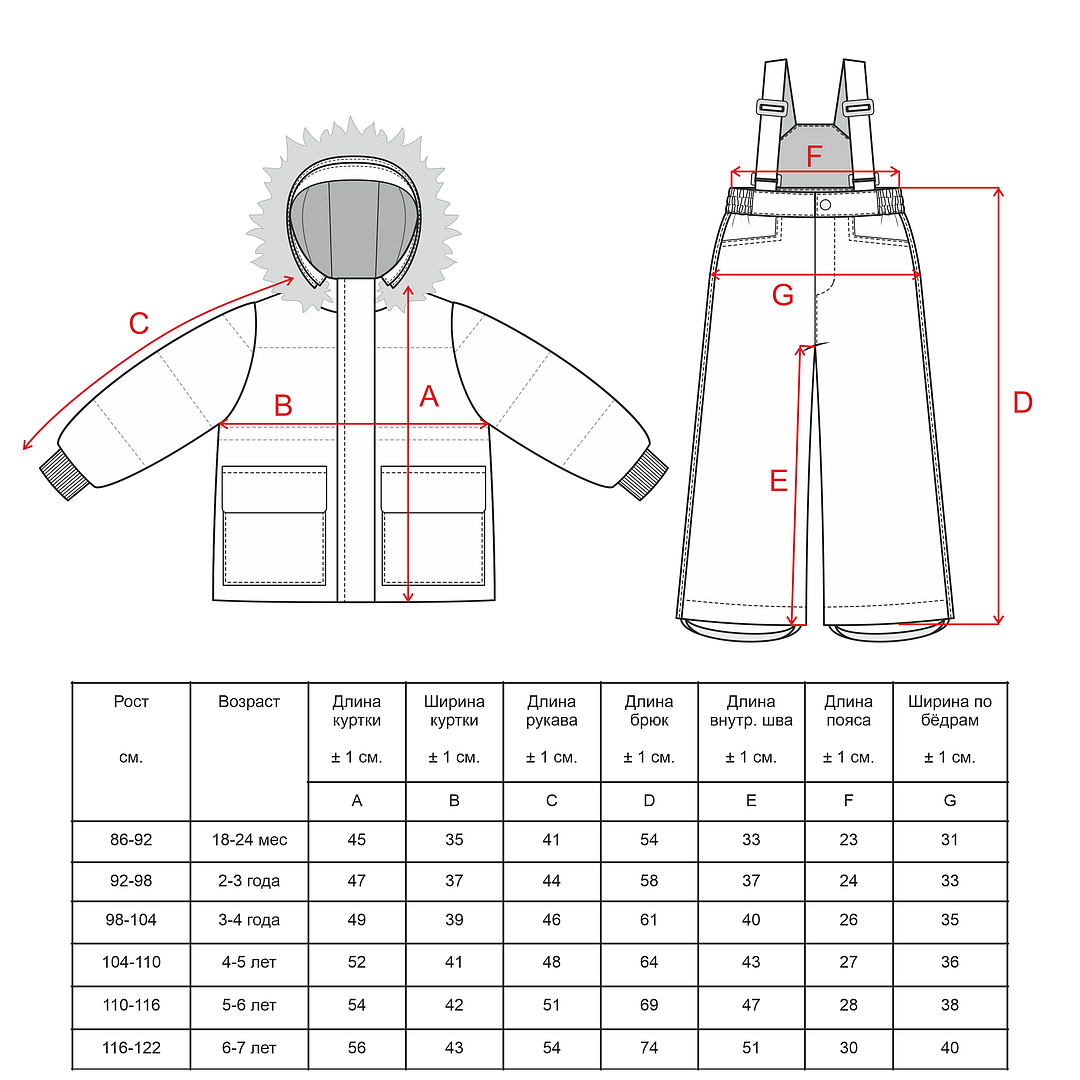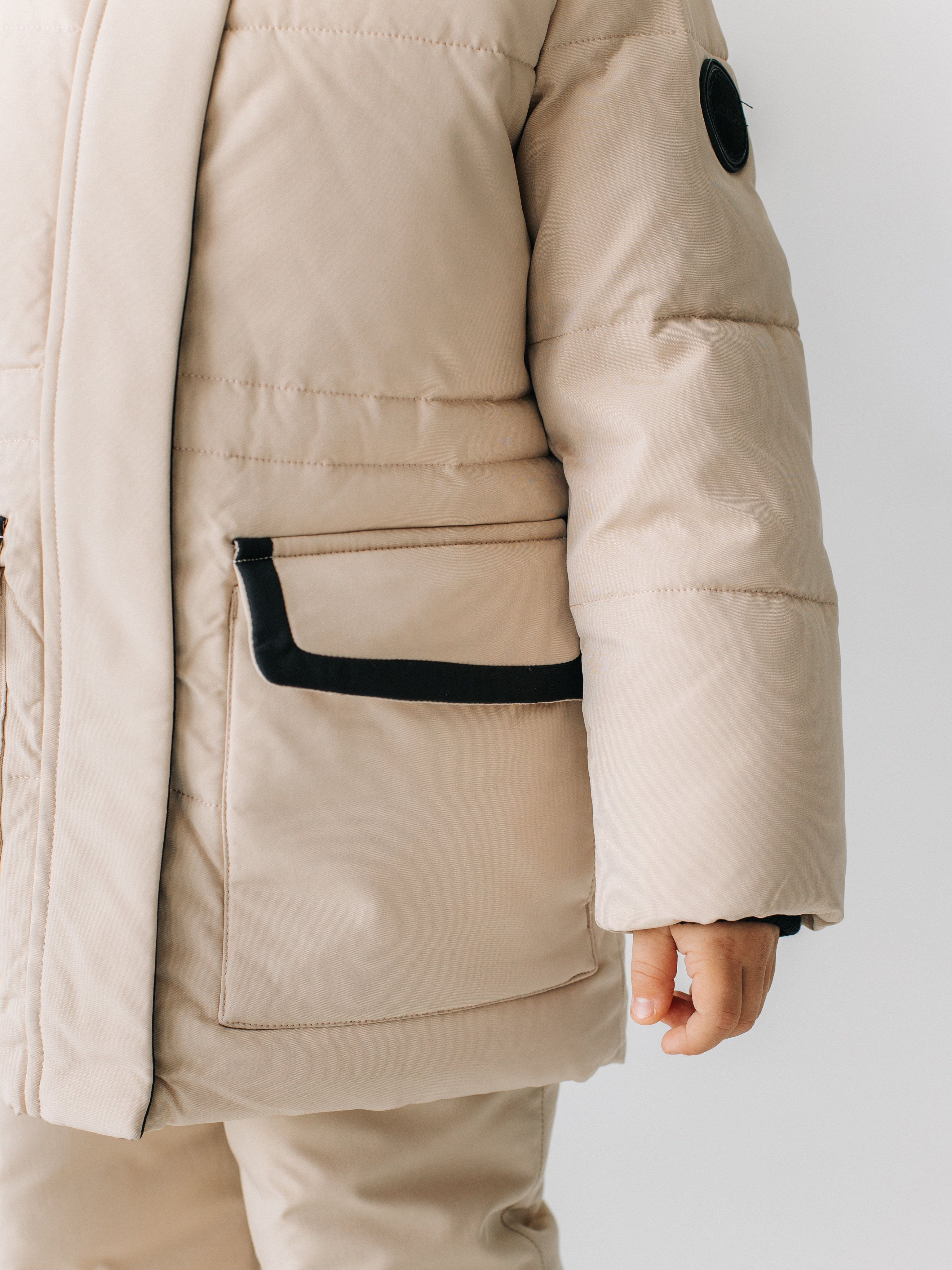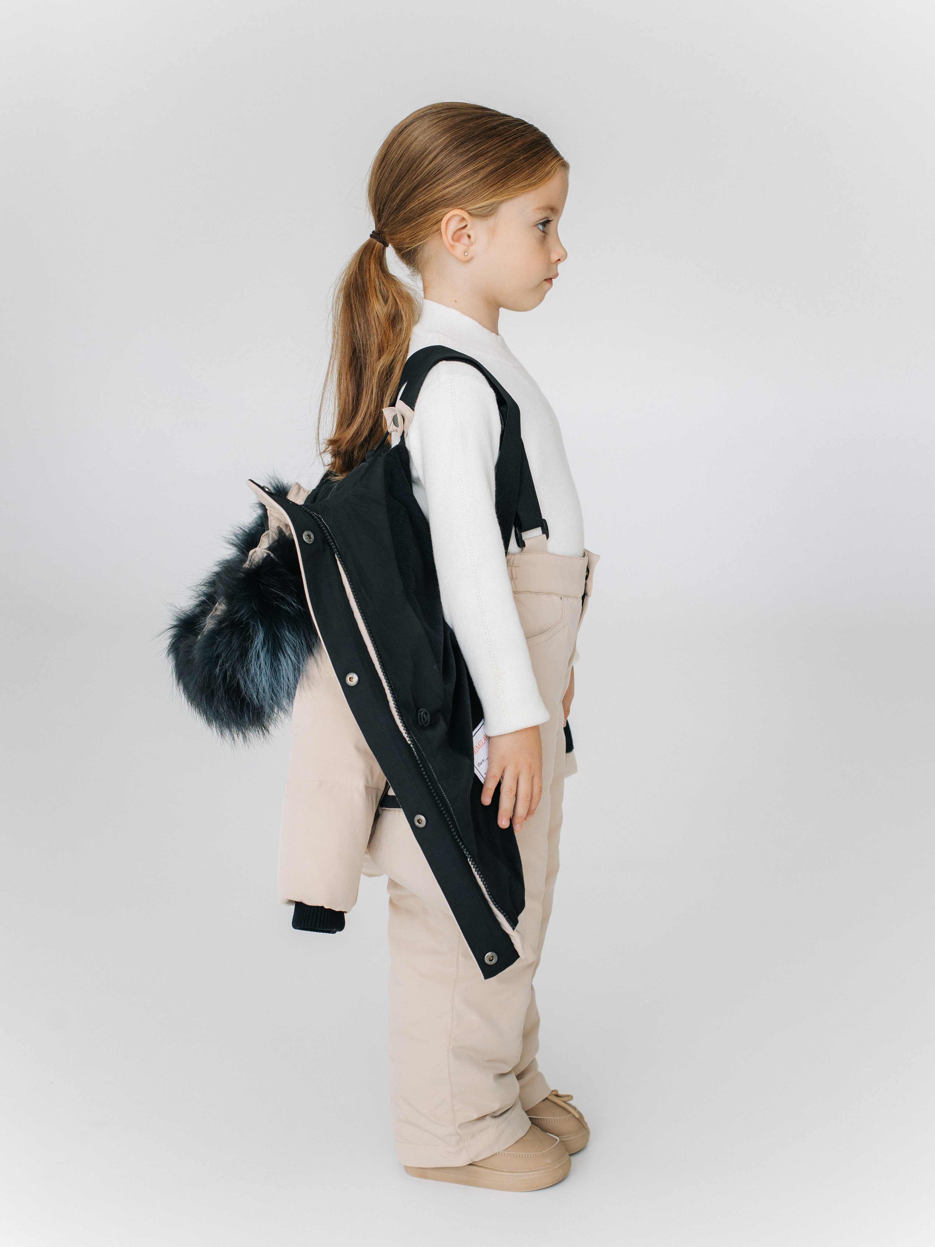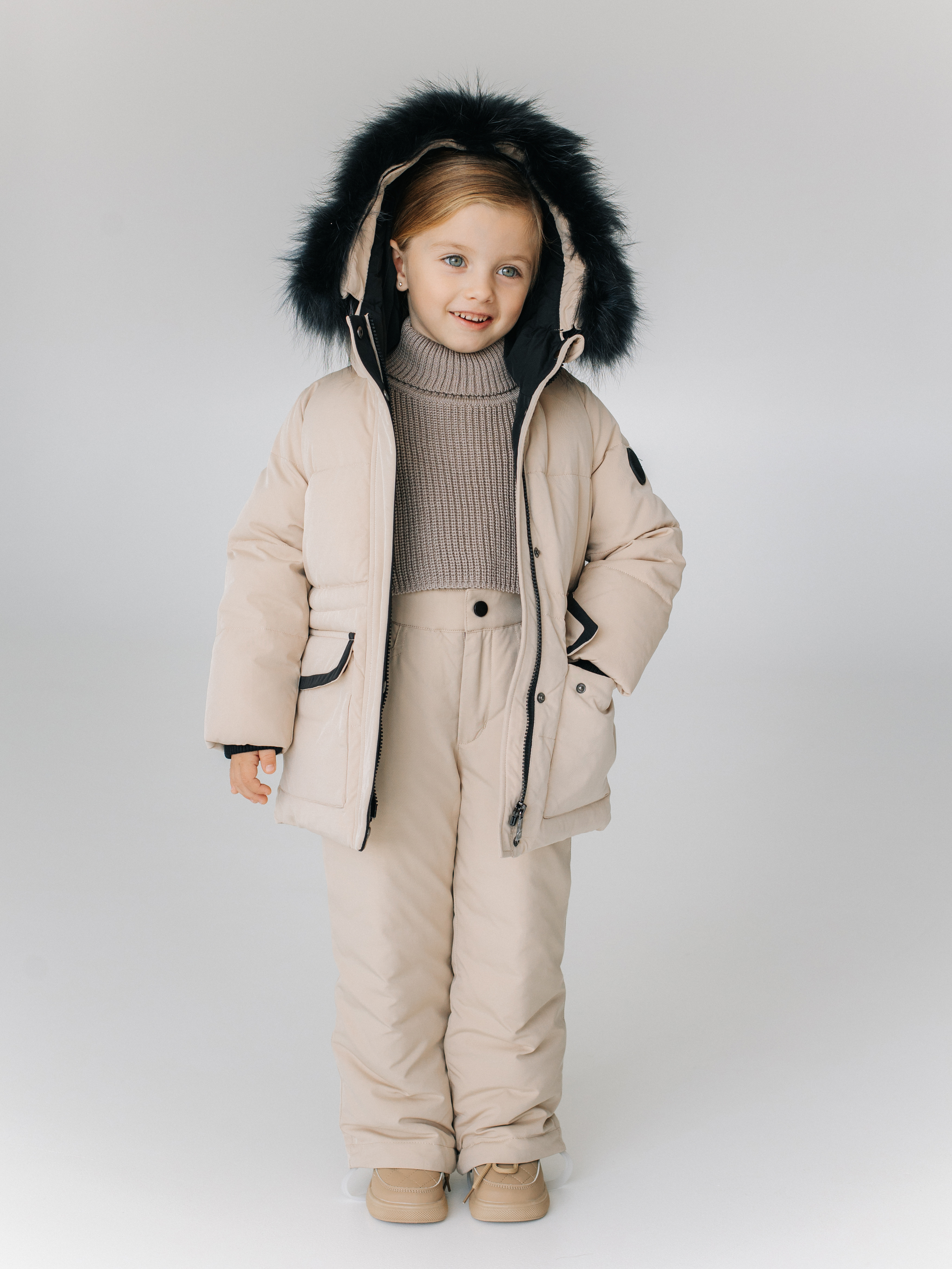 Капюшон вшитый со съемной опушкой из натурального меха. По низу рукавов и штанин эластичные манжеты на резинке.