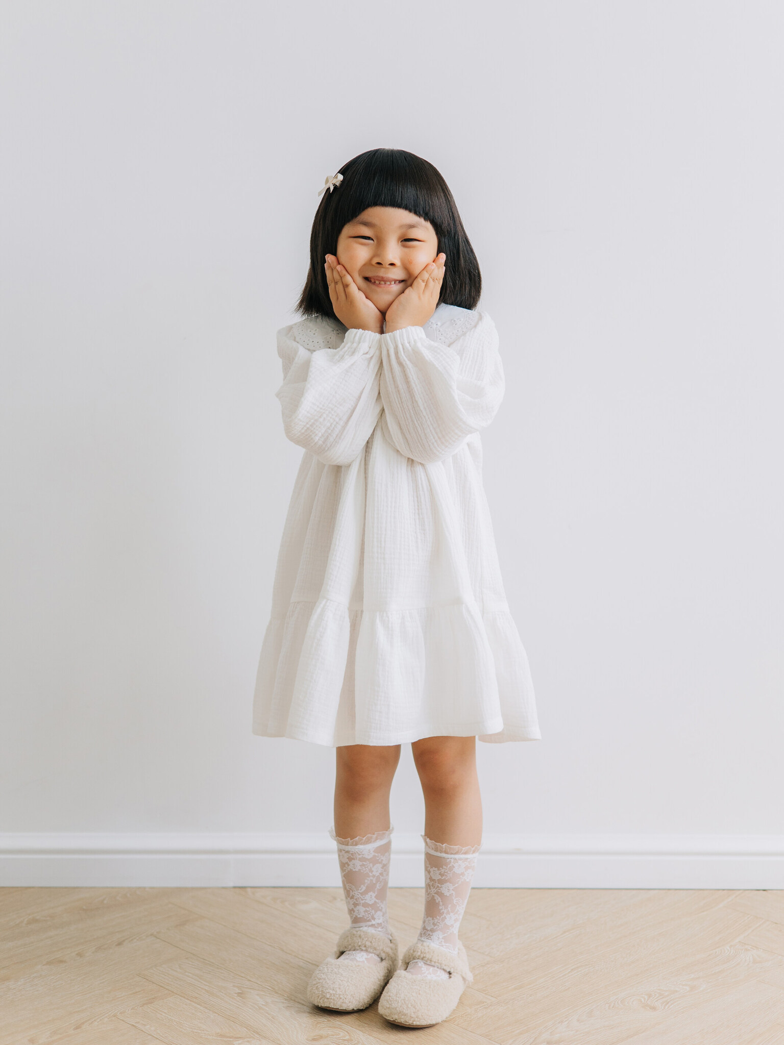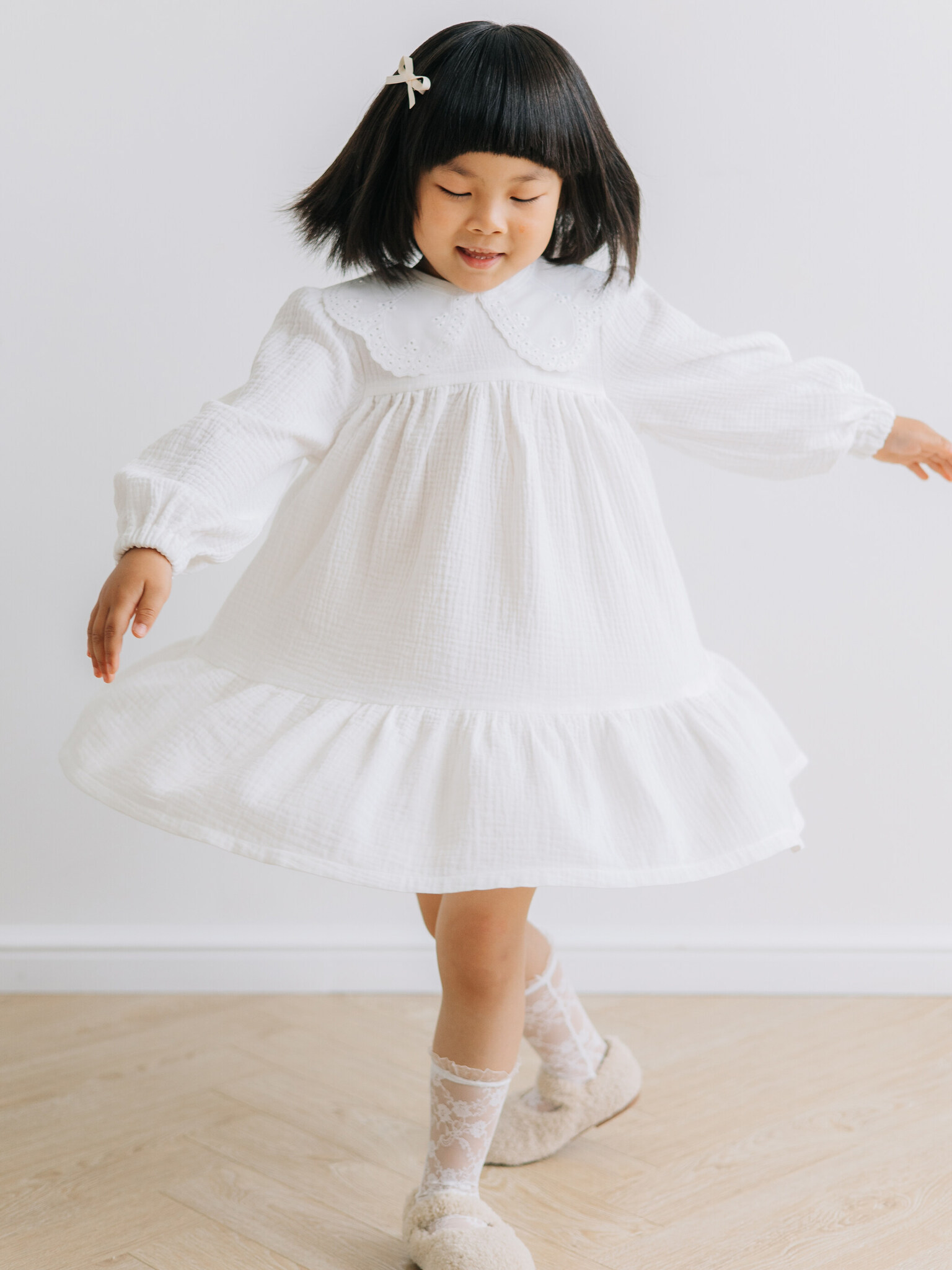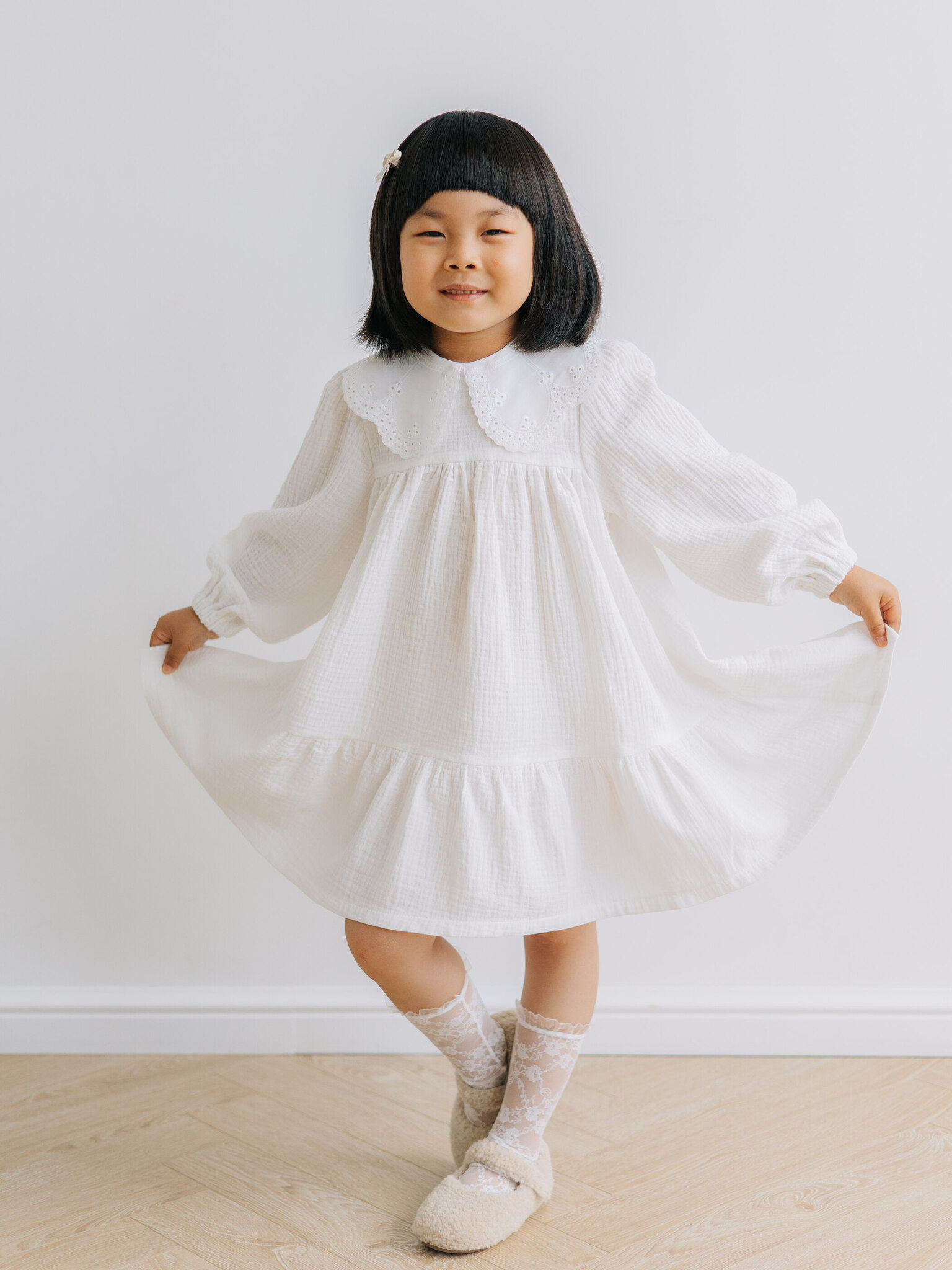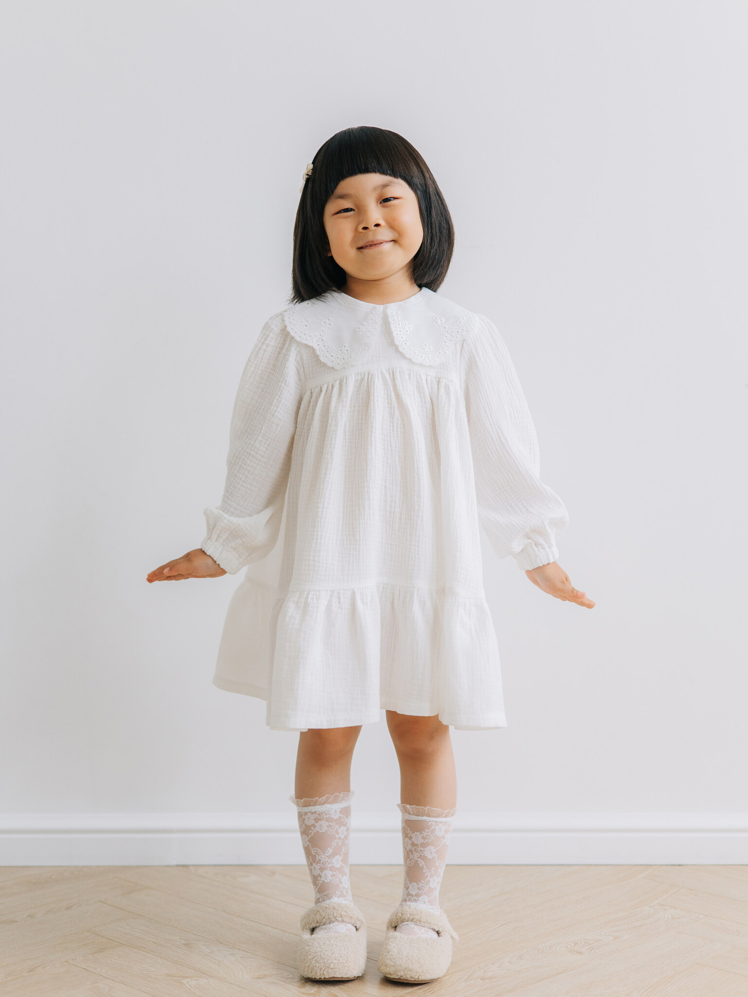 Платье с воротником из муслина, Молоко