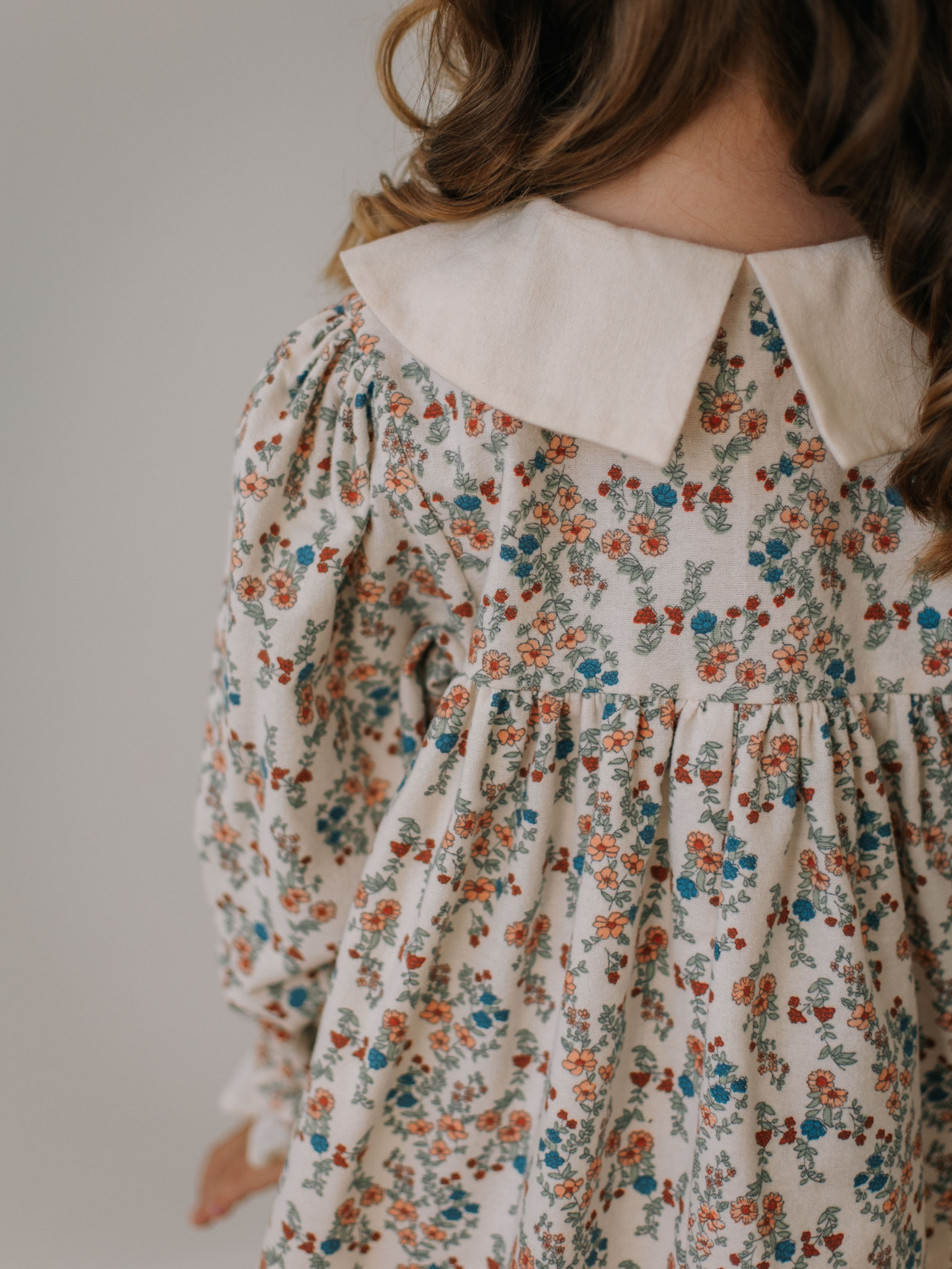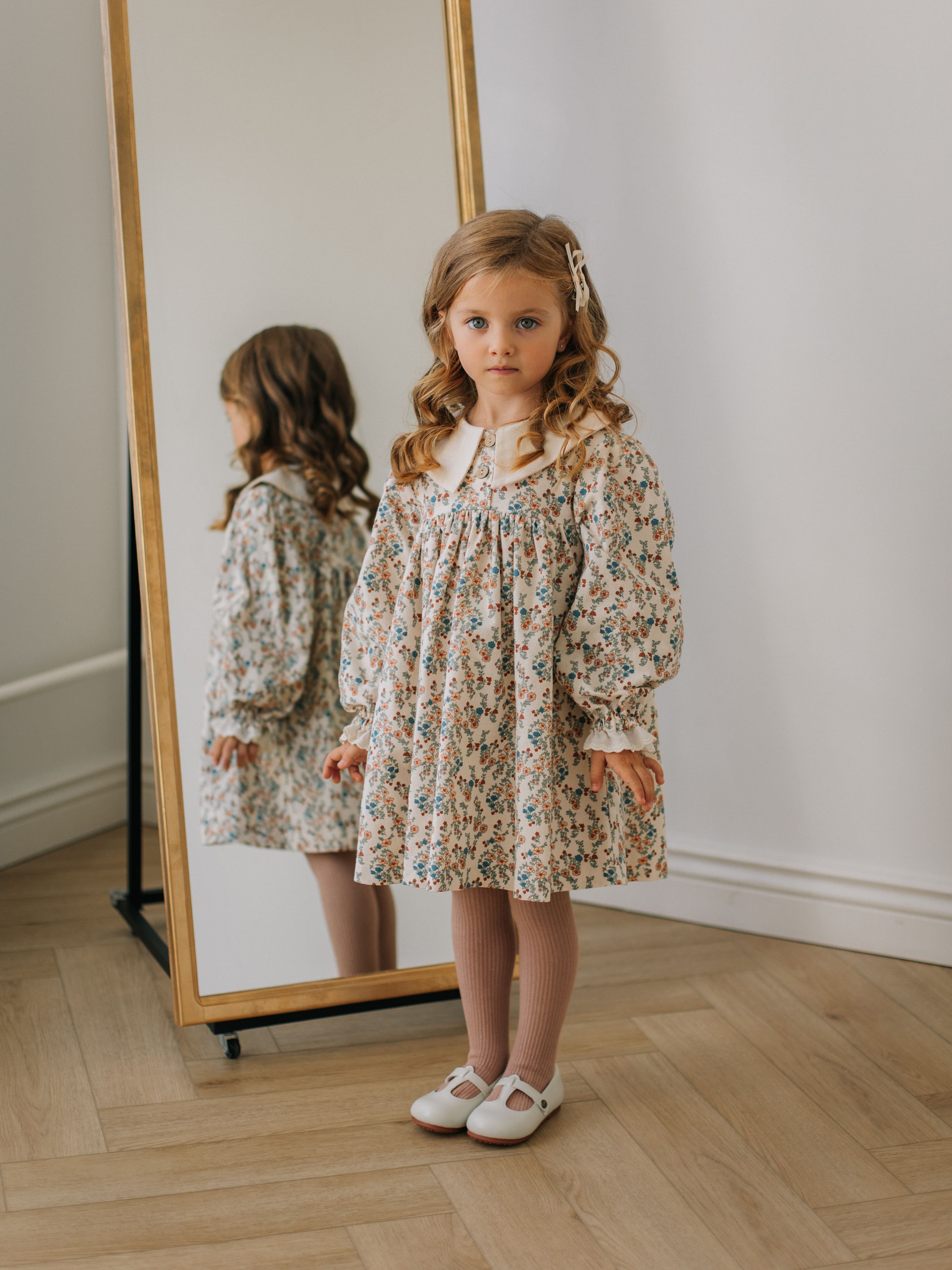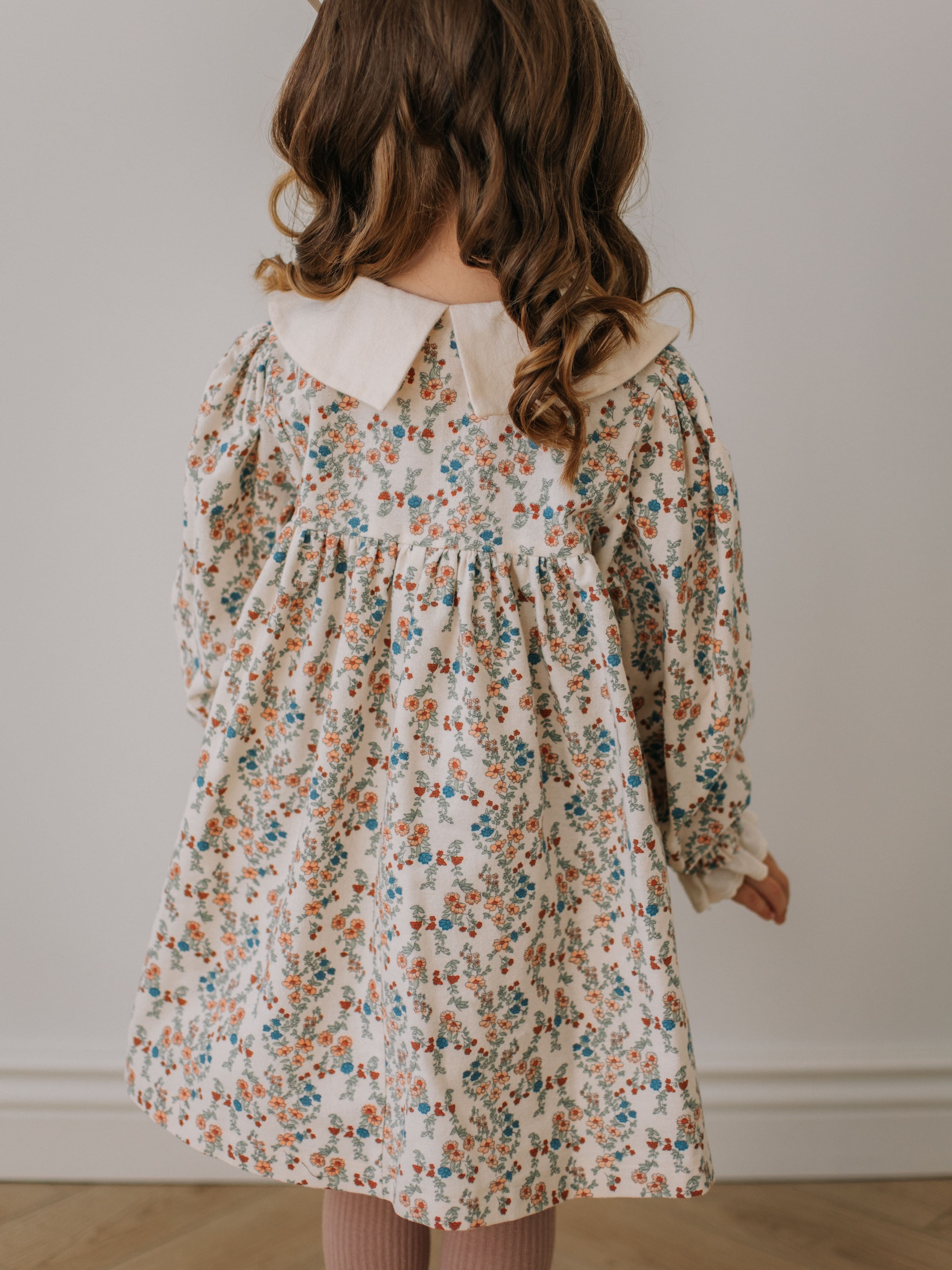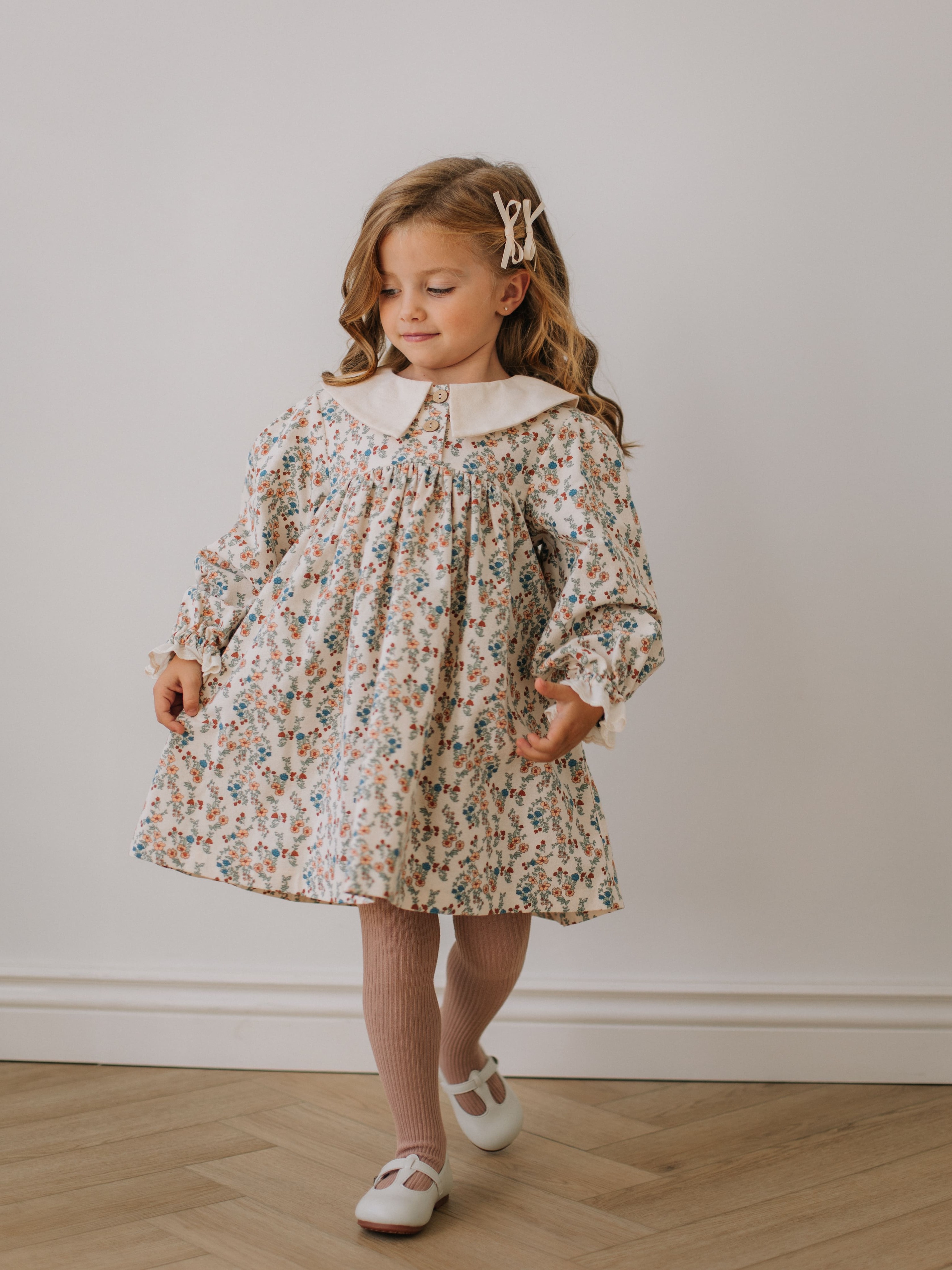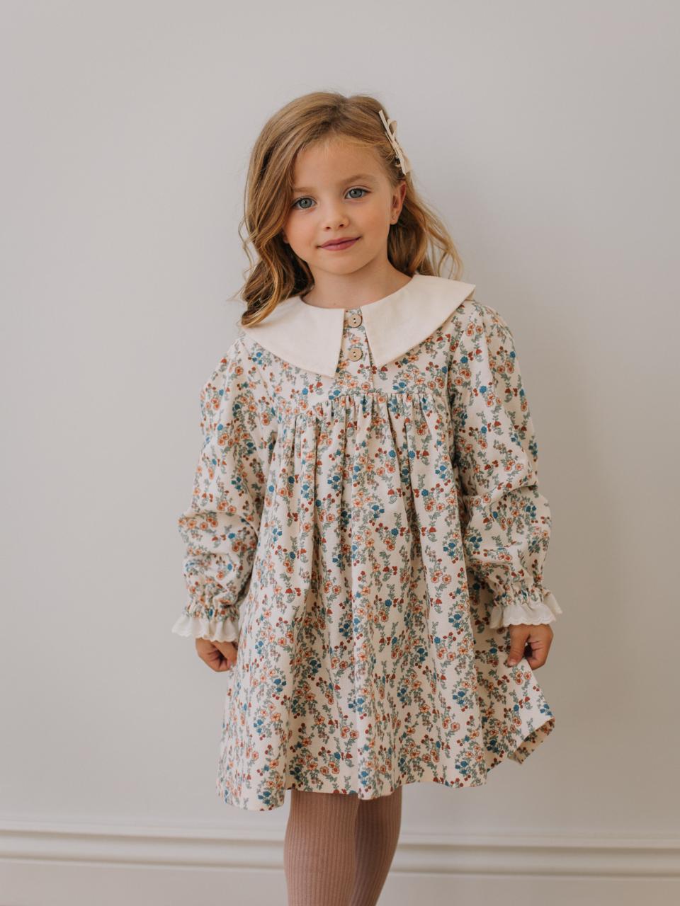 Платье с воротником в цветочек, Молоко